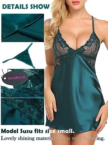 Avidlove Women Lingerie V Neck Nightwear Satin Sleepwear Lace Chemise Mini Teddy