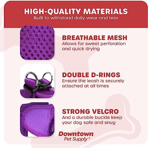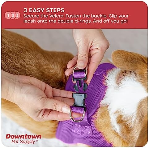 Downtown Pet Supply Step in Dog Harness for Small Dogs No Pull, Medium, Purple - Adjustable Harness with Padded Mesh Fabric and Reflective Trim - Buckle Strap Harness for Dogs