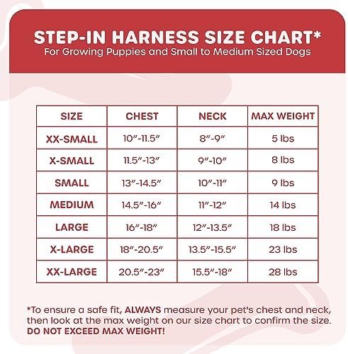 No Pull Harness for Dogs: Our soft dog harnesses feature all-weather and fast-drying padded mesh fabric that ensures your furry friend stays comfortable during walks, runs, and outdoor adventures Enhanced Visibility: With reflective trim on this dog walking harness, you can keep your pet safe and visible during low-light conditions or nighttime walks without additional accessories Secure and Simple to Use: Equipped with a strong hook and loop closure, quick-release buckle strap, and double D-rings, this no escape dog harness is designed to provide maximum security and control Durable and Long-Lasting: Made with high-quality materials, our dog body harness is built to withstand daily wear and tear, providing your pet with long-lasting comfort and security Size Chart: Please refer to our step in harness sizing chart to make sure you select the right dog chest harness for your pet to provide a perfect fit #1,167 in Pet Supplies ( ) #12 in