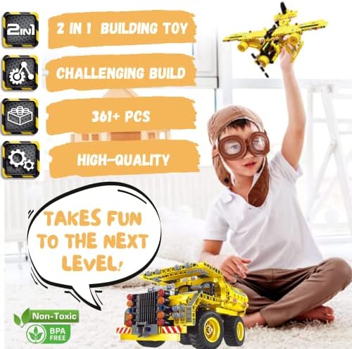 STEM Building Toy for Boys 8-12 Build a Dump Truck or Airplane 2 in 1 Construction Engineering Kit (361 Pcs) Educational STEM Toy Set for Kids Popular Gift for Boys Ages 6-12 + Years Old