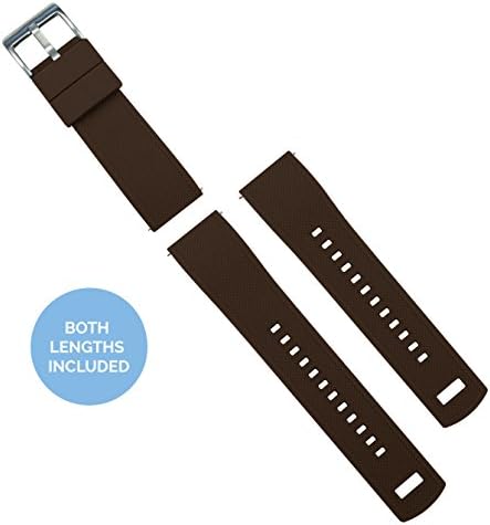 SWAP IN SECONDS: Quick release spring bars allow you to swap bands in seconds to compliment your wardrobe or mix and match with BARTON's other Leather, Canvas and Silicone quick release watch bands to take your timepiece from the gym to the workplace. Simply slide quick release knob with finger as shown in diagram. SELECT PROPER WIDTH: Compatible with any traditional or smart watch that uses 18mm, 19mm, 20mm, 21mm, 22mm, 23mm or 24mm spring bars. Measure watch lug where band and spring bar meet the watch casing. It is important that your watch's lug width is the exact width of the band you select or spring bars will not fit correctly. You can also find the specifications for most watches by searching online. TWO LENGTHS INCLUDED: Each band comes standard with different two lengths of the ‘long side’ of the strap (the side with the holes), assuring a perfect fit for nearly any wrist. Fits wrists 5" to 8" in circumference, but watch geometry may also impact fit. LOCKING FEATURE and OTHER ATTRIBUTES: BARTON’s proprietary locking feature assures that the free end of the strap stays securely in place. Quick release spring bars, durable silicone, solid tang 316L stainless steel buckle, scent free and dust free, 2mm taper from watch head to buckle. SMART WATCH WIDTHS: 22mm - Samsung Gear S3 Frontier, Samsung Gear S3 Classic, Samsung Galaxy Watch, Samsung Galaxy Watch 3, Fossil Gen 5 Carlyle, Fossil Sport :: 20mm - Samsung Galaxy Watch 6, Samsung Galaxy Watch 6 Classic, Samsung Galaxy Watch 5, Samsung Galaxy Watch 5 Pro, Samsung Galaxy Watch 4, Galaxy Watch 4 Classic, Samsung Galaxy Watch 3, Samsung Gear S2 Classic, Samsung Gear Sport, Samsung Galaxy Watch, Samsung Gear Sport, Samsung Galaxy Watch Active, Samsung Galaxy Watch active 2