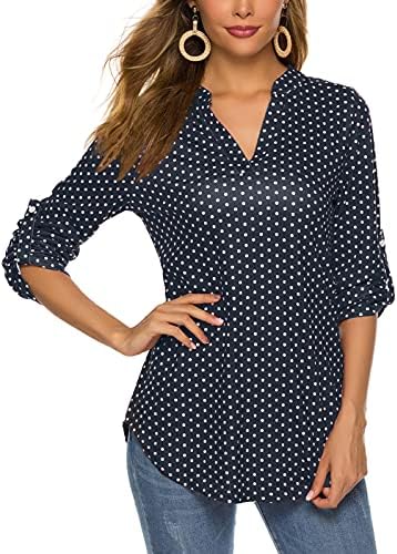 Polyester+Spendex/Elastane.Comfortable and breathable Material: Lightweight and Stretchy, Keep Comfy and Cool in All Days. Elegant Design, roll up 3/4 sleeve shirt, long sleeve tunic tops, v neck shirt, solid color blouse, hip length, pleated flowy style. The fashionable henley shirt makes this lightweight blouse timeless fashion, which makes you both chic and classic. Easy to pair with jeans, tight pants, casual pants, leggings and shorts, or you can pair it with black pants and high heels for office work. Occasion: Simple and nature design makes this tunic shirt could be wore to work or casual, maybe a party, a picnic or just for house wear. Roll up 3/4 sleeve tops, it is perfect in all seasons. #12,051 in Clothing, Shoes & Jewelry ( ) #449 in