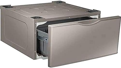SAMSUNG 27-Inch Washer Dryer Pedestal Stand w/ Pull Out Laundry Storage Drawer, Stainless Steel, WE402NC/A3, Champagne