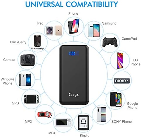 ✅【A must have on the go】:26800mAh High Capacity power bank portable charger is perfect for for GPS when using motorcycle,Vacations,Business trip,Camping,Hiking, no need to worry about losing contact with anyone when runing out of phone battery. (Please be aware that this item is NOT wireless unit) ✅【Power Bank with Dual input and Dual output】:There are 2 USB Ports output which can be shared with friends or charge 2 devices at the same time. It is with 2 input options,USB Micro input and USB C input options allow you to recharge it with different cords (The recharging cord comes with the item is USB Micro Cord) Please recharge this item with a 5V 2.1A wall charger,do NOT use an iPhone square charger which is 5V 1.0A output,please. ✅【Portable phone charger with LED display】:The front LED Display will be more convenient to know the remaining juice than a blinking dot. So that you will know exactly when to recharge the item. To turn on the LED Screen, just need to connect your devices to the item or click the power button on the side of the item. The LED screen is Hidden-Design,you will NOT be able to see the display unless the LED screen is ON. ✅【NOTE】:The battery pack will work with 5V 2A USB heated vest,heated jacket, Waterproof Heated Safety Bomber Jacket,it will NOT work with 7.4V heated clothing with DC jack. ✅【What you can get】: 26800mAh Portable Charger Battery Pack*1,Micro USB cable for recharging the unit*1,User Manual*1