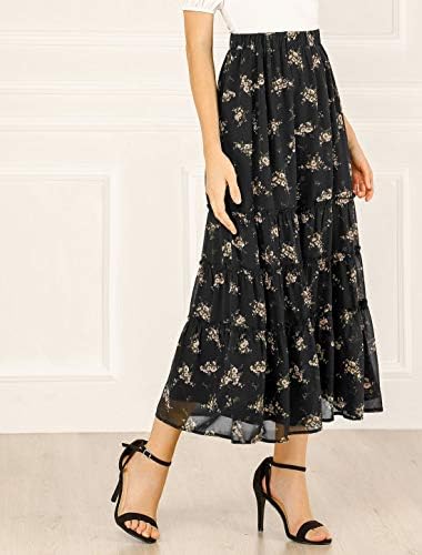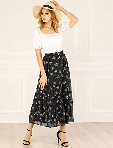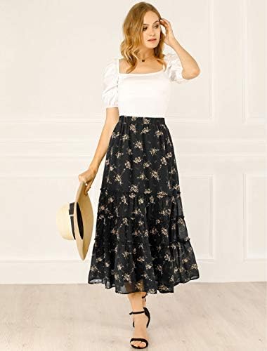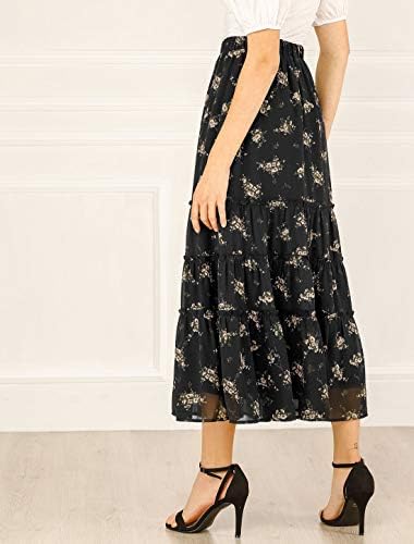 Allegra K Women's Floral Skirts Chiffon A-line Long Tiered Ruffle Boho Midi Skirt XS-3XL