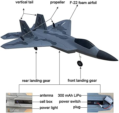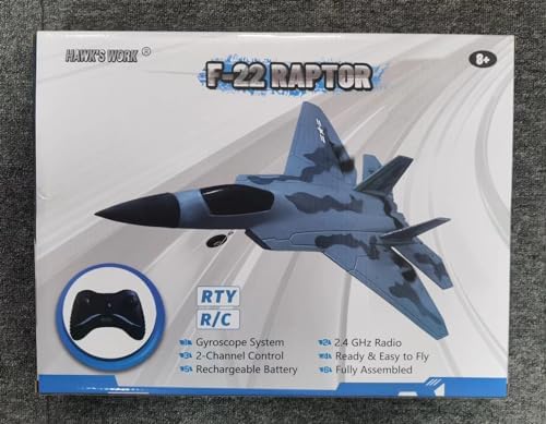 HAWK'S WORK 2 CH RC Airplane, F-22 Plane Ready to Fly, 2.4GHz Remote Control, Easy to Fly RC Glider for Kids & Beginners