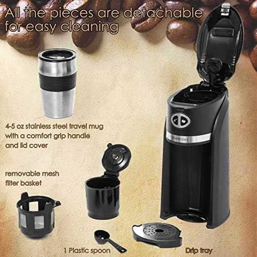 Grind And Brew Coffee Maker: To enjoy the single serve drip coffee maker with a built-in grinder, add your favorite grinds of whole coffee beans; the portable coffee maker will grind. After grinding, brewing automatically commences, protecting flavor and aroma, even during extended grinding. Easy To Operate: With dual brewing options, you can choose whole coffee beans or coffee powder to enjoy a rich cup of aroma coffe with our grind and brew single cup coffee maker. Pre-ground coffee lovers can enjoy their favorite pre-ground coffee with this simple coffee maker. 14 Oz Tumbler: This will keep your morning coffee nice and warm for longer. The sturdy stainless steel and comfortable rubber grip make our convenient travel coffee mug a must-have accessory for every coffee lover. Easy To Clean And Use: The coffee machine with a grinder has an illuminated one-touch button. Our electric coffee brewer features an auto shut-off function that will shut off your personal drip coffee maker. All parts of the single cup coffee maker, including the removable bin grinding chamber, mesh filter basket, are easy to clean. Customer Support: Mixpresso personal single cup coffeemaker is covered under our 1-year warranty!