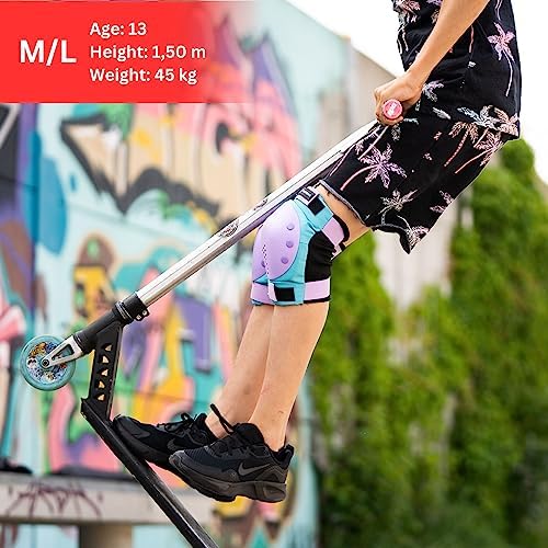 Polyester SHRED IN SAFETY – Make sure your joints are protected before you pull on your roller skates or step on your board. Cover your wrists, knees, and elbows with 6 expertly engineered pads from SKATEWIZ FIND YOUR FIT – Relish full-coverage skateboard gear that feels like an extension of your body. Adjust extra-long hook and loop straps to your perfect size setting and feel empowered, not encumbered CLIMATE NEUTRAL – Our company is climate neutral, so are our products – from manufacturing to disposal, we have offset all unavoidable emissions RIGOROUSLY DESIGNED – Armor yourself or your kid with protective gear you can trust. Your skate pad set was built to take more abuse, cover more skin, and hold up to almost any extreme athlete’s needs PADS with a PEDIGREE – Let loose and get gnarly knowing your skating pads have met CPSC, CE and CP65 standards. Enjoy impressive impact absorption, safe materials, and waste-minimizing packaging SICK SERVICE – Count on SKATEWIZ for high-performance rollerblade and skateboard accessories. Contact us anytime with questions, concerns, and stories about your sweetest grinds, stalls, and flips