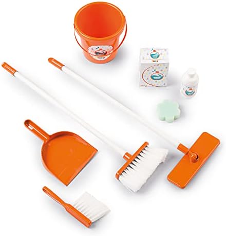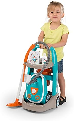 Smoby Cleaning Trolley - Toy Vacuum Cleaner with Realistic Lights & Suction Sounds - Toddler Broom, Mop, Brush, Dustpan, Bucket, Toy Empty Packaging, Kids Real Cleaner Pretend Play Set, Age 3+