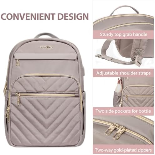 VANKEAN 15.6 Inch Laptop Backpack for Women Work Bag Fashion with USB Port, Waterproof Stylish Travel Bags Casual Daypacks for College, Business, Light Dusty Pink