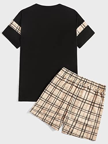 Mens 2 piece outfits short sleeve tops drawstring short pants sets Crew neck t-shirt, with contrast pattern at both sleeves and front, side pocket to store your essentials, the elastic waistband of the plaid shorts fits comfortably Stretch, lightweight fabric, two tone detail, perfect with slip-on or sneakers to create a fashionable leisure style Suitable for any occasions, such as street, dating, party, outing, vacation, weekend, beach and casual daily wear Please refer to the Item Description below for Size Details. #166,924 in Clothing, Shoes & Jewelry ( ) #236 in