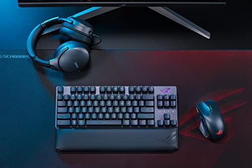 Tri-mode connection: Use Bluetooth to connect and switch between three devices at a time, enjoy up to 76 hours of low-latency gameplay in 2.4 GHz RF wireless mode, or use standard wired USB ROG RX optical mechanical switches: Exclusive ROG switches feature centralized RGB lighting for all-round in-key illumination, and provide consistent wobble-free keystrokes with near-zero debounce delay FPS-ready: Tenkeyless form factor leaves more room for the mousing hand and includes an extended Ctrl key that’s easier to hit ROG PBT doubleshot keycaps: Provide a solid typing feel and long-lasting durability (keycap material may vary by region) Built to last: Durable aluminum alloy construction with sandblasted finish