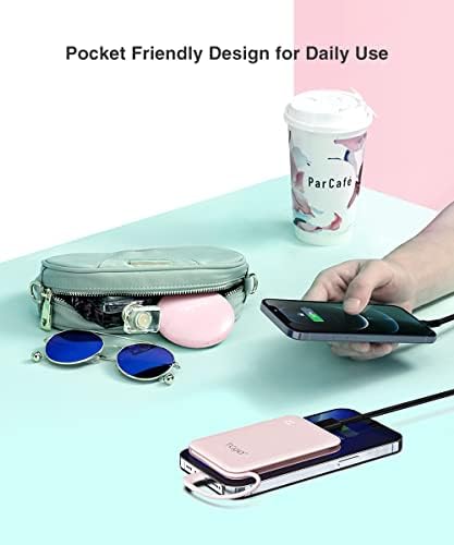 Portable Charger with Built in Cable: Perfect portable phone charger built-in cord compatible with your iPhone devices. Just plug into your phone for charging, there's no need to carry any extra cables. Pocket Friendly and Stylish Design: This battery bank charger covers with colorful Stylish Piano Lacquer (Black, white, pink, blue, red, green) for better visual beauty and hand feeling. Lightweight and compact design makes it easier to carry around in your pocket or bags. Three Way To Charge Your Devices: The portable battery charger is equipped with one usb type-c input&output and another usb output, as well as the built-in cord. Triple-output port design allows you to share this portable power bank with your families and friends. Daily Battery Backup: Ultra slim and credit card sized battery pack has a enough capacity of 4500mAh, which is suitable for daily use and short travel as a portable battery backup for your cell phones and other usb compatible smart devices. What's You Get: 1 * 4500mAh Portable Charger, 1 * USB Type-C Charging Cable, Worry-free 12-month warranty and friendly customer service.