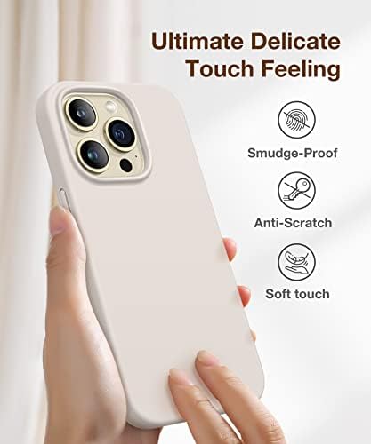 GONEZ for iPhone 14 Pro Case, with 2 Pack Screen Protector + 2 Pack Camera Lens Protector, Soft Anti-Scratch Microfiber Lining, Shockproof Protective Liquid Silicone Phone Cover 6.1'', Stone