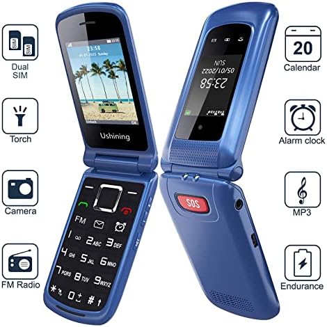 【SpeedTalk SIM】Ushining Senior cell phone come with a SpeedTalk SIM Card, minimum cost only $5 per month, option for Port-in(Keep) your existing phone number or get a new phone number. 【Built for Seniors】USHINING 4G senior flip phone, easy to use operation system, 2.4 inch screen with big menu icon, large font, high volume and high-definition loudspeakers, equipped with a charging dock, very convenient for the elderly when charge the phone. 【Practical Shortcut Keys】this senior feature phone has a SOS button on the rear cover for emergency call, preset 5 emergency contacts, allowing you immediately dialing to a preferred contact number in case of an emergency. Ideal for seniors, children or people with disabilities. 2-9 Speed dial buttons(Dedicated Direct dial keys). 【Practical Functions】blacklist, 30M powerful flashlight, external FM Radio, alarm clock, audio player, calculator, calendar, Bluetooth, dual flashlight, 6 language: English, Dutch, Spanish,Portuguese, French and Italian. 【Ultra long standby】Low power consumption design,1000mAh batteries provides 5-6 hours talk time or standby time over 100 hours (4 days). Convenient charging base, plug and charge,easy to use for the elderly. 【4G LTE network】This senior 4G basic cell phone is compatible with T-Mobile(Prepaid Plan), MetroPCS, Tello Mobile, Ultra Mobile, SpeedTalk, Simple Mobile, Mint Mobile, Red Pocket(GSMT) and any other carriers that using T-Mobile service; NOT for CDMA Carriers (Verizon, Sprint, Boost, PagePlus) or AT&T.