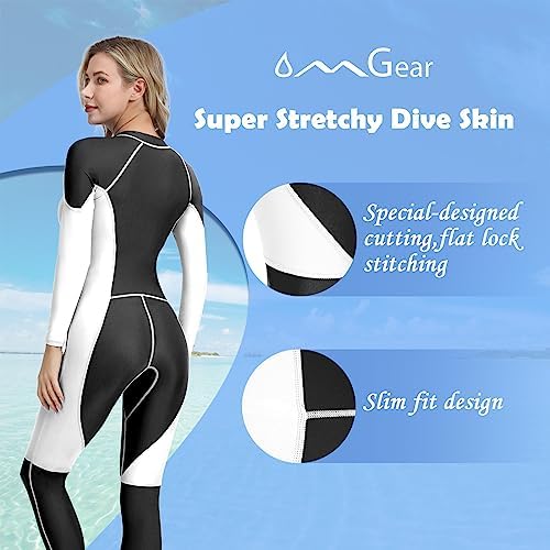 【Super Stretchy Spandex Fabrics】:OMGear full coverage swimsuit are made by 80% nylon and 20% spandex,which is super stretchy and breathable.Unlike wetsuit made by neoprene,material of this diving suit is thin and quick-dry.It is durable,quick-dry and comfortable for a long service life. 【Full Body UV Protection】:OMGear full piece rash guard is made by fabrics with UPF 50+ coating ,so it is UV protection,can protect your skin from sun burning.In addition,OMGear full body snorkeling suit can protect you from jellyfish,coral reef,or other oceanic irritants.Though it is not same thermal as the neoprene wet suit,but somewhat this thin dive suit can keep you warm. 【Slim Fit and Front Zipper Dive Skins】:Slim fit swimwear is close to your skin,feel like a second skin, naturally form fitting to reduce drag in the water, offers no restrict movement ensures you freely move underwater. OMGear full swimming suit with long front zipper is easy to put on and take off, perfect for using in swimming pool,river,lake,sea and beach. 【Must Haves for Watersports】:A sun-resistant stretchy full body dive skin is perfect for swimming ,kayaking ,surfing ,snorkeling, scuba diving, freediving, boating ,spearfishing, sailing, wakeboarding, paddling ,canoeing, rafting, jet skiing, river trekking ,fishing, beach, boardboarding, lobstering, crabfishing, whitewater and other watersports or outdoors activities. 【Satisfaction Policy】:Every OMGear full body long sleeve surfing rash guard are under strict QC standard before shipment. Please contact OMGear after-sales service team if you have any issues with this diving skin, we will reply you ASAP. We promise we will provide a 100% satisfactory solution for you.