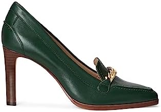 When you intend to add some modern allure to your classic party attire, reach for the LAUREN Ralph Lauren Colleen Heels. Beautifully constructed with a leather upper and lining, the heels flaunt a squared toe silhouette with brass chain hardware on t Easy slip-on style. Leather outsole.