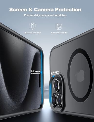 【Unbeatable Protection and Convenience】Our fits iPhone 15 Pro Max Case Magsafe is designed to provide you with unmatched protection and convenience. It is MIL-Grade Drop Tested,Compatible with Magsafe, Shockproof, and has a Translucent Matte Back with Aluminum Alloy Keys. 【Super Magnetic Attraction for Stable Charging】The fits iPhone 15 Pro Max phone case magsafe is equipped with a built-in strong magnet that ensures your Phone 15 Pro Max stays in place no matter how it rotates. 【Fast Charging Experience】Tigowos fits iPhone 15 Pro Max Magsafe Case perfectly aligned magnets make wireless charging faster and easier than ever, providing a magical attach and detach charging experience, which is good news for players who play mobile games. 【Skinny Touch】The iPhone 15 Pro Max Magnetic case has a translucent matte back with a smart Nano Oleophobic Coating design that prevents fingerprints, watermarks, oil, and dust.the Tigowos Fit Magsafe case for Phone 15 Pro Max also brings you excellent skinny touch. 【Screen & Lens Protection】Our fits Magsafe Case for Phone 15 Pro Max has 2.9 mm camera lips and 1.2 mm screen lips that help your phone avoid rubbing against surfaces that leave permanent scratches.