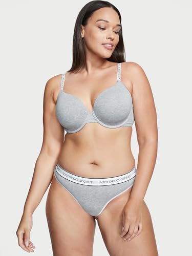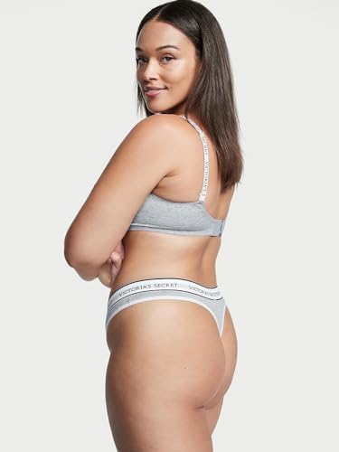 Victoria's Secret Cotton Logo Thong Panty Pack, Underwear for Women, 4 Pack, Medium Heather Grey (XXL)
