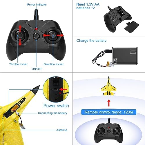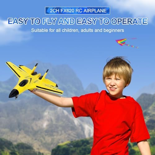 RoofWorld RC Plane Remote Control Glider Airplanes 2.4 GHZ 2 Channels, Easy to Fly RC Fighter, Remote Control Aircraft with Automatic Balance Gyro for Adult Kids Beginner