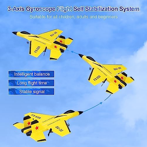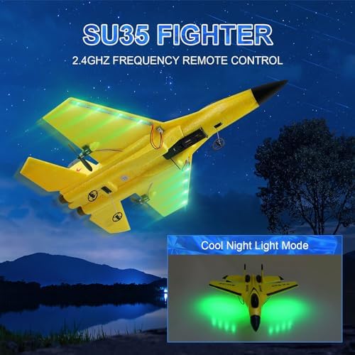 RC Airplane 2CH RC Plane Ready to Fly 2.4GHz Remote Control Plane SU35 RC Jet Easy to Fly Airplane Toys for Boys Gift for Kids Beginners with Night Lights USB Charging(Yellow