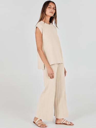 Size - S=US(4-6), M=US(8-10), L=US(12-14), XL=US(16-18). Our two piece outfits for women are available in various sizes ranging from S to XL, ensuring a perfect fit for everyone. Refer to our rich description for more details. Design - The pullover top of this 2 piece lounge set features solid color, crewneck, short sleeve, splited high-low hemline, pull-on style. Pants are designed with comfy elastic waistband and knit wide leg. Keep you feeling confident and stylish for casual days. Match - This women knit 2 piece outfits can match with booties, slippers, heels and sneakers. An effortless, cozy, and chic design for a laidback, throw-on-and-go approach to dressing. Occasion - Two Piece Loungwear Set is perfect for casual, daily wear, office, school, streetwear, dating, hangout, vacation, going out, spring, fall and winter. It's also a good gift to your friend or family Wash - Hand wash / Do Not Bleach / Dry Flat / Do not iron