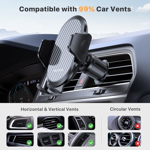 【Never Fall Off-Metal Hook Design】Miracase car phone holder adopts simplified locking design. The steel metal hook will catch one of car air vent blades and provide excellent strudiness. It will work well for your car even in extremely harsh environments 【One-hand Operation】With quick release button, adjustable clamp arms and foot, Miracase car phone mount makes it very easy to insert and remove your phone with single hand. Provide you with safer driving whether you are talking, navigating, listening to music or charging. 【Universal Compatibility】Miracase cell phone car mount is compatible with all phones (4.0-7.2 inches) and thicker cases. 【360° Flexible Rotation】The 360-degree rotatable design will provide you with the best viewing angle to keep secure driving. You can place your phone in any orientation (landscape, portrait and more), Just enjoy the best drving experience. 【 Professional Support】Please feel free to contact us for any product issues, a satisfying solution is promised forever.