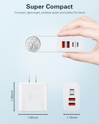 USB C Charger Block, 2-Pack 40W 4-Port USB C Wall Charger Fast Charging Dual Port PD Power Adapter+QC Double Wall Plug Multiport Type C Brick Charger for iPhone 15 14 13 12 11 Pro Max XS XR X,Samsung