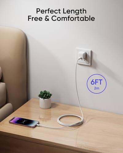⚡【Supports High-Speed Charging】Power up your iPhone to 50% in just 30 minutes when you use an 18W or higher Power Delivery USB-C charger,which saves more than 1 hour for you, when compared to the 5W original charger. ⚡【MFi Certified】 Apple MFi Certified USB to Lightning cable, guaranteed no pop-up warnings, these iPhone fast charging cables use advanced C94 Lightning end design for fast charging, which can safely and quickly charge your iPhone device. ⚡【Superior Durability and Strong Quality】High quality TPE material makes this cable more durable and stronger than ordinary iPhone charger cables, while remaining flexible and tangle-free. It is tested for up to 30,000+ bends, making it more durable. Withstand all kinds of daily connection needs and long-term use. ⚡【Wide Compatibility】: MFi certified for flawless compatibility with all Lightning devices, including iPhone, iPad, and more.Works With for iPhone14/13/13 Mini/13 Pro/12/12Pro/12 Pro Max/12 Mini/11/11 Pro/11 Pro Max/XS Max/XS/X/XR/8 Plus/8, iPad Pro/ iPad Air/ iPad, AirPods Pro. Standrad Charging Speed works with iPhone 7/7 Plus/6s/6s Plus/6/6 Plus/SE/5s. ☎【A Cable for Life】We’re so confident in our cables, we are offering a hassle-free replacement for all quality issues. Not for half a year, not for 18 months, but for an entire lifetime. It’s the only cable you will ever need to buy.USB C to Lightning Cable 6 feet long, convenient to charge your device in bedroom, sofa, office, travelling, even if you are in the back seat of the car. #63 in
