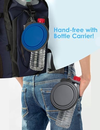 Aonkey Collapsible Dog Bowls with Bottle Carrier, 2 Pack Travel Dog Water Bowl Upgraded Carabiner, One-Piece Molded Rim No Fall Off or Crack, Foldable Silicone Portable for Pets Walking Hiking 15oz