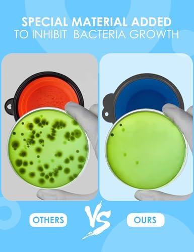 【Unique and Different】Aonkey dog bowl set is in a league of its own, addressing issues from feedback on other bowls. The upgraded carabiner boasts a larger, sturdier opening, reducing the risk of breakage. Plus, enjoy the added convenience of bottle carriers, compatible with most cola-shaped water bottles in the market. 【Revolutionary Structure】Say goodbye to the hassle of assembled plastic rings. Aonkey's foldable dog bowl boasts an upgraded structure, integrating soft silicone with a hard rim. No more worries about the ring coming off or cracking, and the clip hole remains intact. 【Unmatched Stability】Thanks to the integrated hard rim, our dog bowl stays sturdy when unfolded. No more spills or losing structure. Carry it confidently with one hand, even when it's full of water. 【Perfect for On-the-Go】These travel bowls are a breeze to pack since they collapse effortlessly. Clip them to a backpack or water bottle – ideal for outgoing to the park, hiking, driving, or any social activities with your furry friend. 【Safety First】Crafted from high-quality, food-grade silicone with a tempting beef flavor, our dog foldable bowl eliminates the typical silicone smell that dogs dislike. BPA-free, dishwasher safe, it's not just convenient but also healthy for your pet. #1,769 in Pet Supplies ( ) #4 in