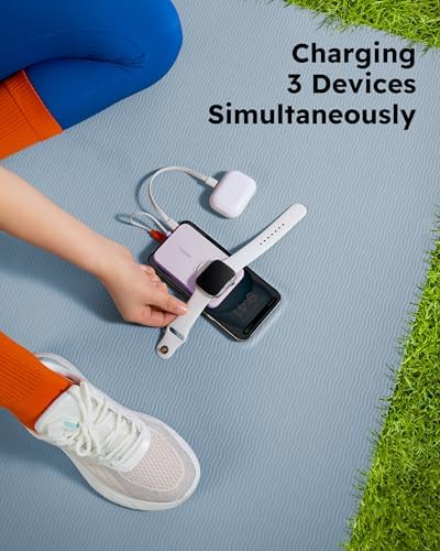 ✔️【Special Designed for Apple Family】: Built-in cable for iPhone, a magnetic module for Apple Watch, and a Type C port output for iPhone 15 series, the portable charger will power your iPhone, Apple Watch, and Airpods simultaneously. ✔️【PD 20W Fast Charging】: The built-in cable supports PD 20W fast charging, providing your iPhone with 60% juice in 30 minutes, 3 times faster than normal 5V 1A charger. ✔️【Compatibility】: This portable battery charger is widely compatible with iPhone 15/14/13/12/Pro Max series, Apple Watch 9/8/7/6/5/4/3/2/1/SE/Ultra, as well as other Type C Android devices or tablets. ✔️【5000mAh Battery with Slim Body】: With a slim size of 4*2.4*0.6 inches, the external battery is a perfect travel accessory. 5000mAh capacity is emergenced for daily used, providing 0.7 charges for iPhone15/14, 7 charges for Apple Watch Ultra, 0.52 Charges for iPad mini 6, 40 charges for Airpods, 0.65 charges for Samsung S23. ✔️【What You will Get】: A VEGER 5000mAh portable charger with built in cable, 1x user manual, 1x USB C cable, our worry-free 12 month guarantee and 7 Day/24H friendly customer service. If you have any problems, please contact us and we will solve it within 12 hours. ✔️【Friendly Reminder】When charging your Apple Watch, kindly press the button and wait 5-16 seconds for the wireless charging to activate.